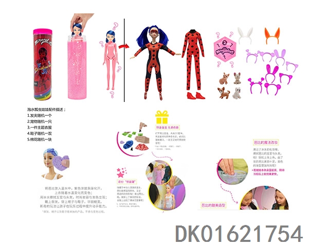 11.5 Inch body water soaked color changing miraculous floating insect reddy series with hair clip. 4 different surprise accessories for shoes, expansion sponge, and small pets