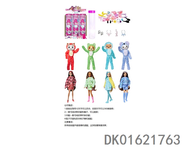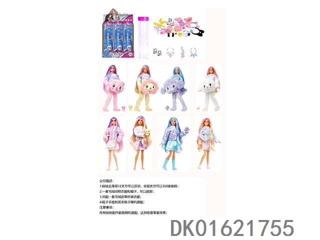 16Th generation high-end surprise 11.5-inch 12 joint real-life cute pet barbie with 1 set of animal plush fashion clothes. bring hair clips, handbags, and shoes. 4 accessories for the necklace. there are 2 sets of clothes, 4 styles, 6pc mixed, 6pcs/box