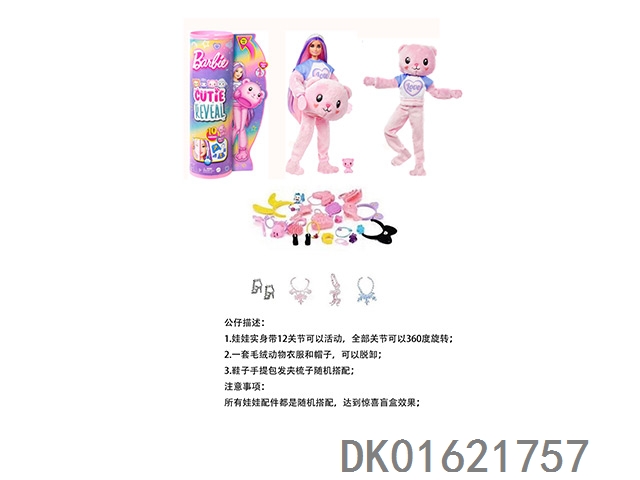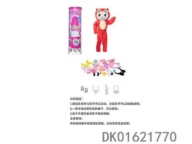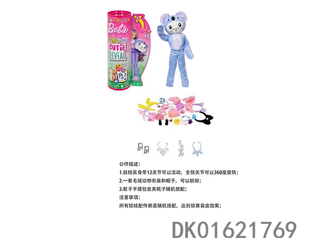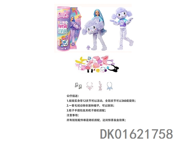 15Th generation high-end surprise 11.5-inch 12 joint real-life cute pet barbie with 1 set of animal plush fashion clothes. bring hair clips, handbags, and shoes. 4 accessories for the necklace. there are 2 sets of clothes, 4 styles, 6pc mixed, 6pcs/box