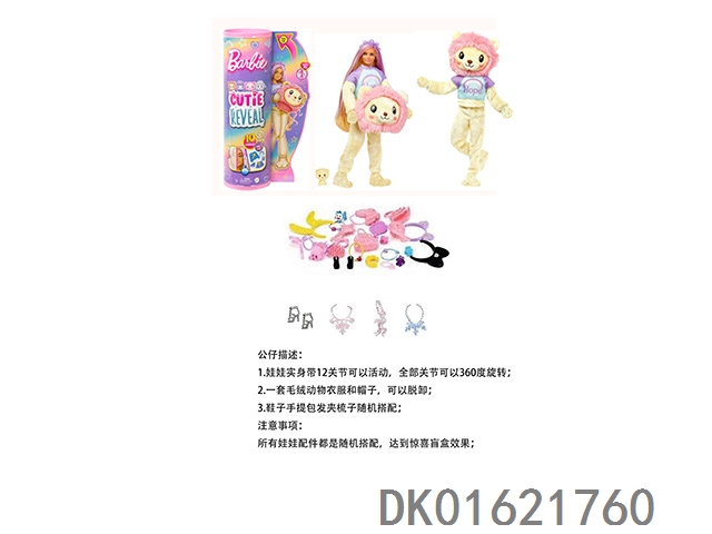 15Th generation high-end surprise 11.5-inch 12 joint solid body blonde lion cute pet barbie with 1 set of animal plush fashion clothes. bring hair clips, handbags, and shoes. 4 accessories for the necklace.