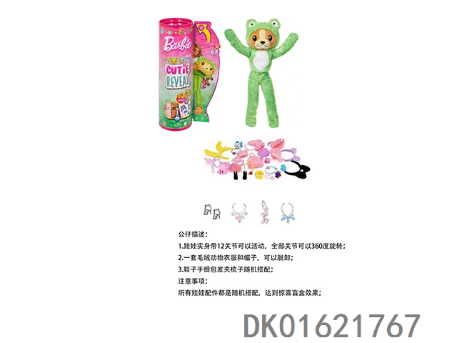 16Th generation high-end surprise 11.5-inch 12 joint real body big eyed frog cute pet barbie with 1 set of animal plush fashion clothes. bring hair clips, handbags, and shoes. 4 accessories for the necklace.
