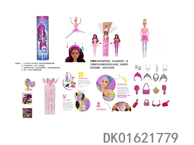 Meitai version of the surprise water-soluble series 11.5 inch real body color reveal color carnival disco barbie with 5 different surprise accessories, doll 360 degree rotation 4 styles 6pcs/box