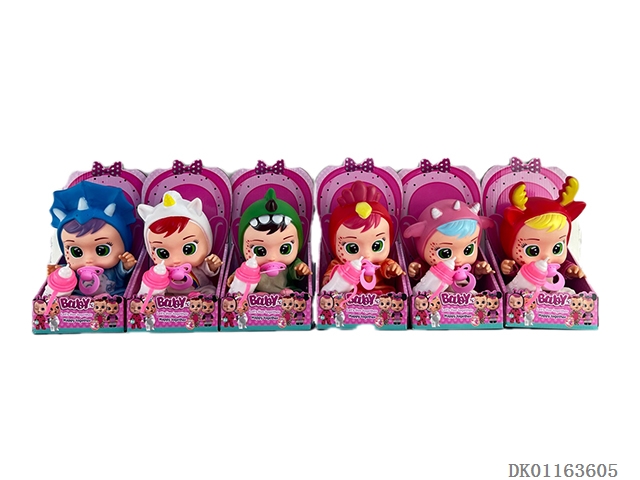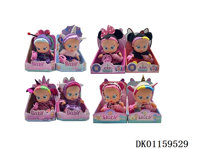 14 Inch full body enamel spray crying baby 6 mixed outfits (four tone music ic)