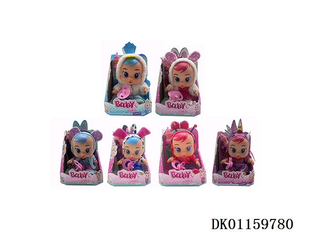 10 Inch full body enamel spray crying baby 6 mixed outfits (four tone music ic)