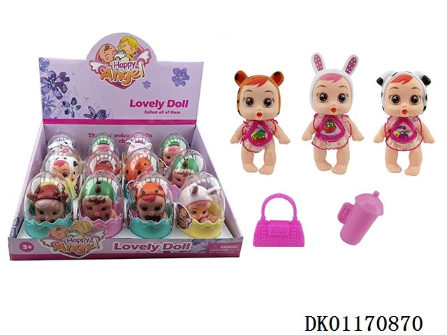 Egg enamel crying baby with handbag and bottle 3 options 12pcs/box