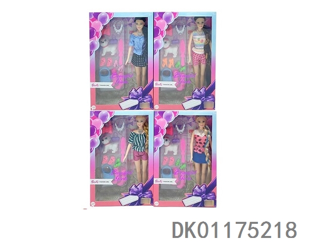 11.5-Inch fashion real body beautiful girl with pet accessories in four mixed outfits