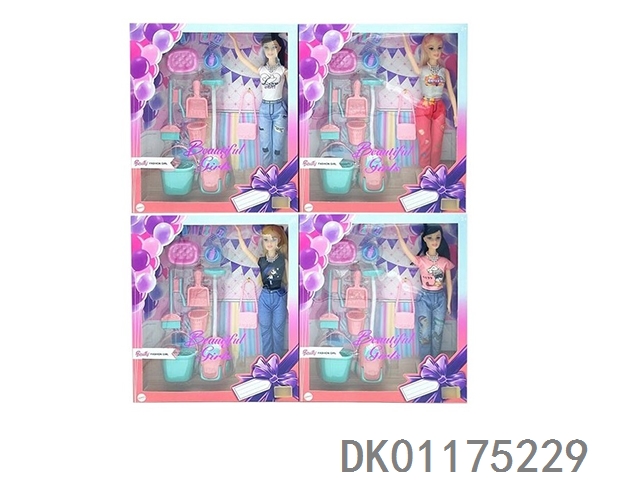 11.5-Inch solid body beautiful girl with cleaning accessories in four mixed outfits