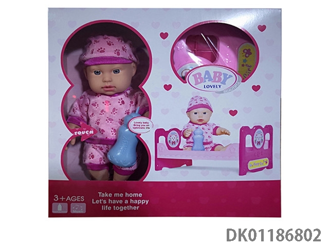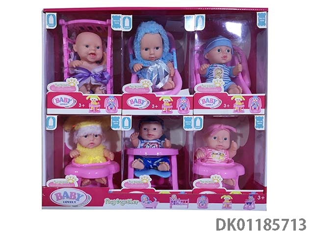 12 Inch enamel expression doll with dining chair and bottle (6-tone ic)
