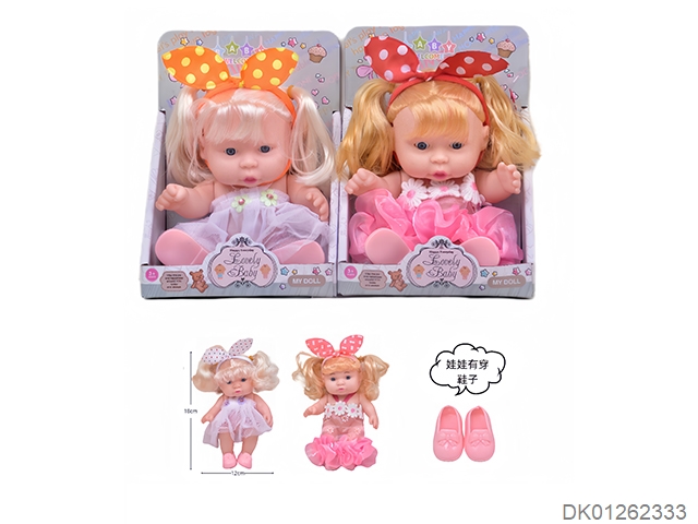 8-Inch full enamel doll with hair accessories and shoes, two mixed outfits (with 4-tone ic)