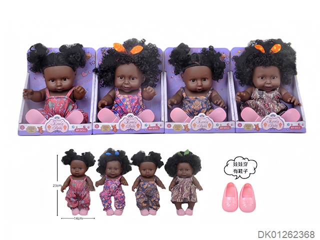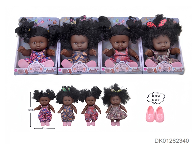 8-Inch full enamel black doll with four mixed shoes (with 4-tone ic)