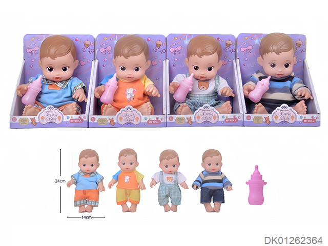 10 Inch full enamel large eyed doll with four mixed bottles (with 4 sound ic)