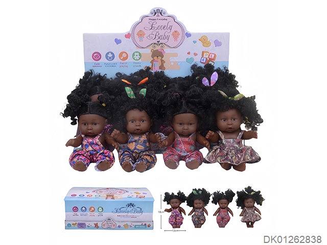 8-Inch full enamel black doll with four mixed designs (with 4-tone ic, 12pcs/box)