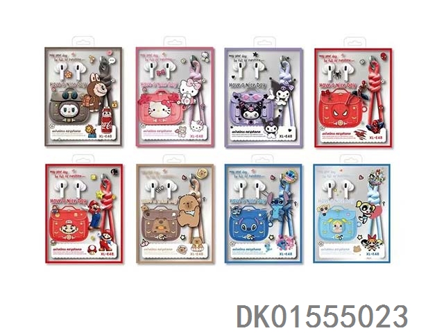 Hot themed cartoon bluetooth earphones, creative leather storage, and dopamine lanyard