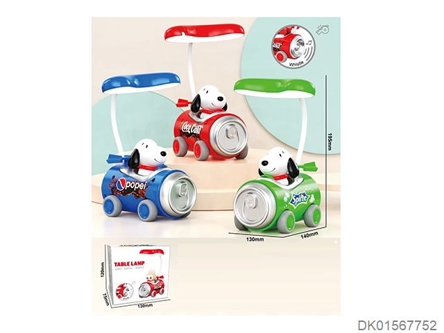 Cartoon snoopy can inertia car small desk lamp with whistle, 3-speed lighting
