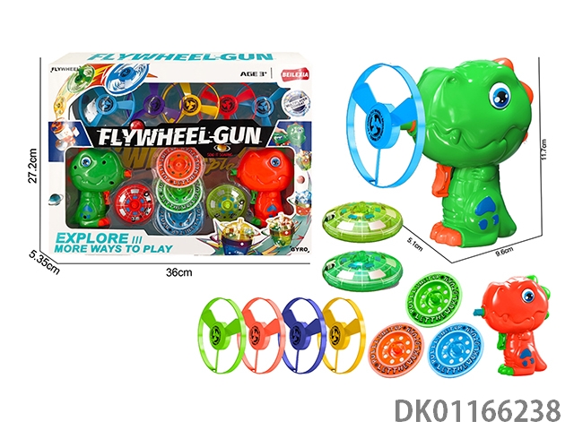 2 Dinosaur guns, colorful 2 flash gyro, 2 ordinary gyro, and 5 ufo