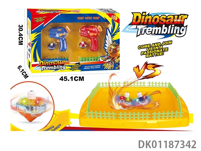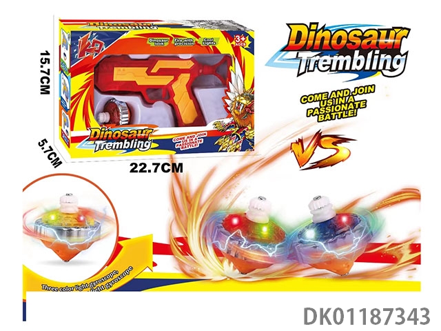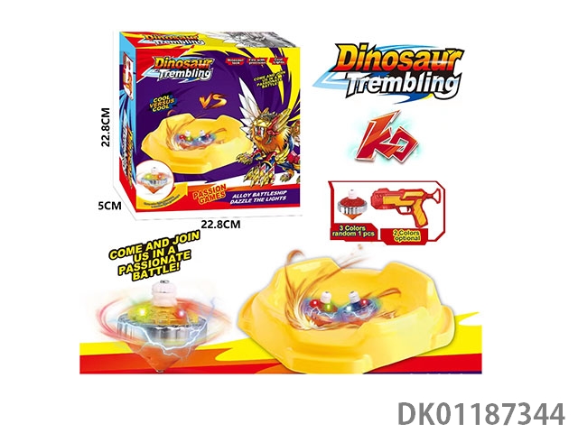 Pulled dinosaur gyroscope gun toy alloy luminous rotating fighting plate gyroscope small handgun