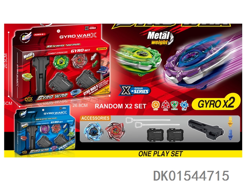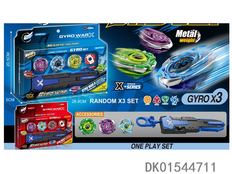 Alloy gyro set with three gyroscopes, dual emitters, handle, and gyro disc