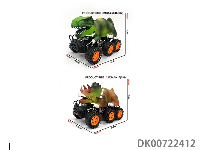Two four wheeled inertial dinosaur cars