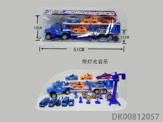 Inertia fire tractor (with light and music) towing 2 f1.2 police cars (including electricity)