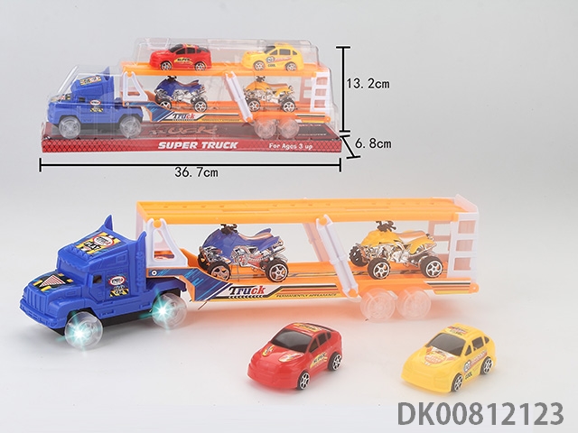 Inertia tractor (bright wheel with light and music) towing 2 sand cars / 2 racing cars