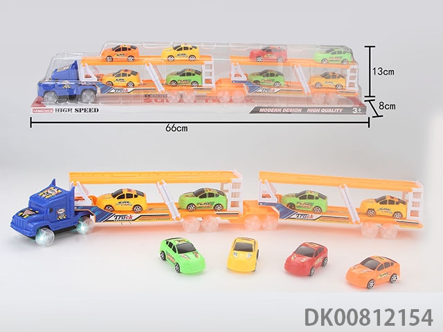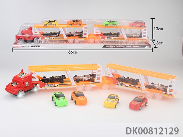 Inertia tractor (bright wheel with light and music) towing 8 racing cars