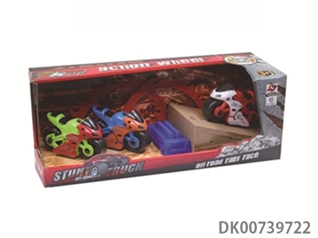 Inertia cartoon high-speed motorcycle set (including 3 motorcycles and 1 ring of fire. 1 set of platform)