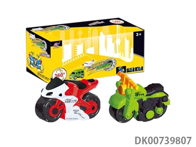 Two sets of 360 degree rotating inertia beach motorcycle and police car