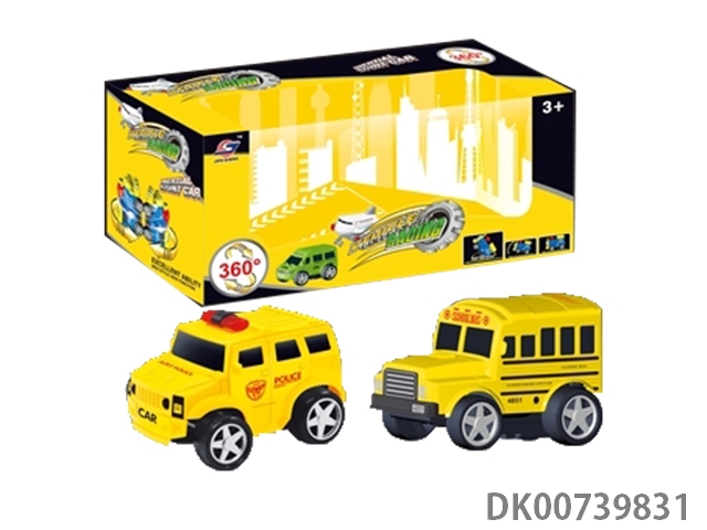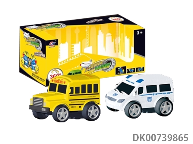 Two 360 degree rotating inertial school bus and police car