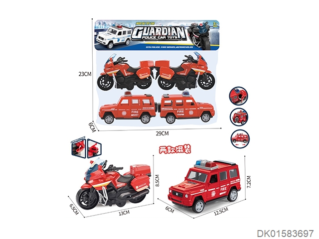Red inertia car, police car, motorcycle mixed with 4 pieces