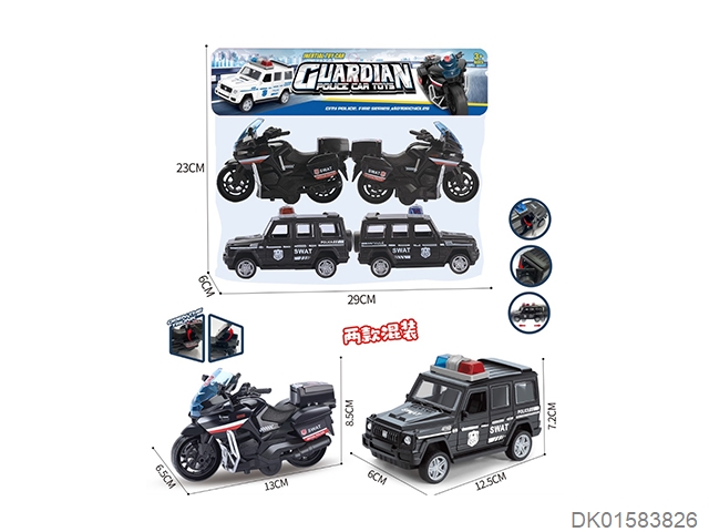 Black inertia car, police car, motorcycle mixed set, 4 pieces