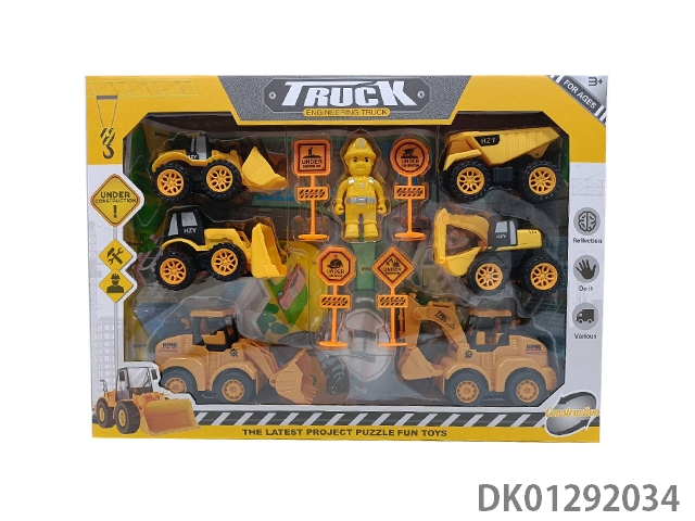 Inertial engineering vehicle and 7 road signs, engineering personnel map
