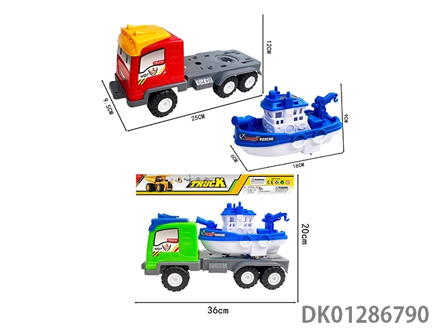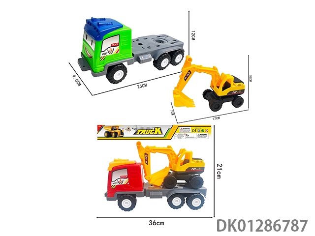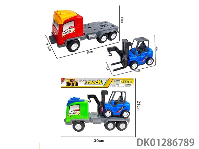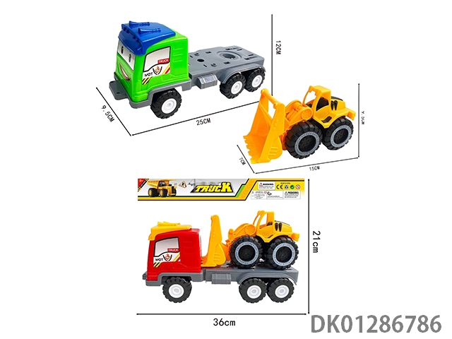 Solid color inertia trailer carrying 1 sliding bulldozer