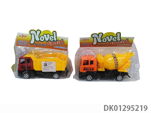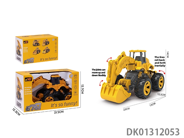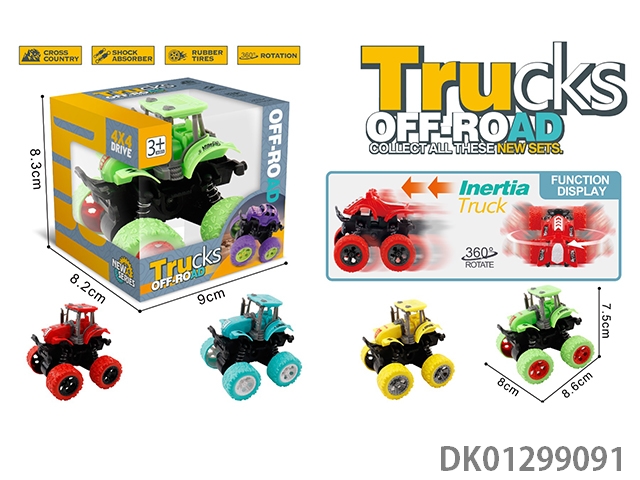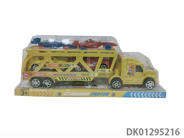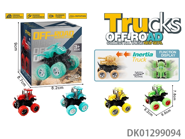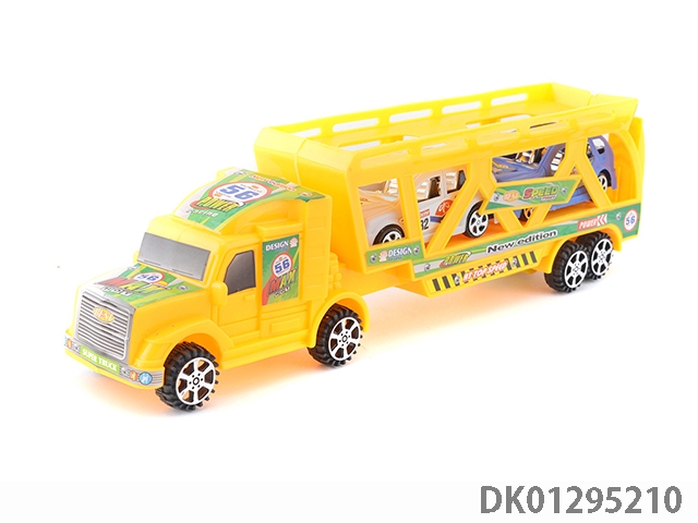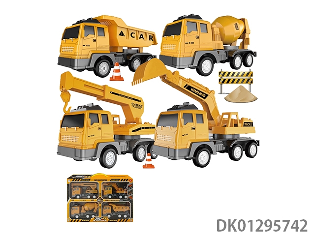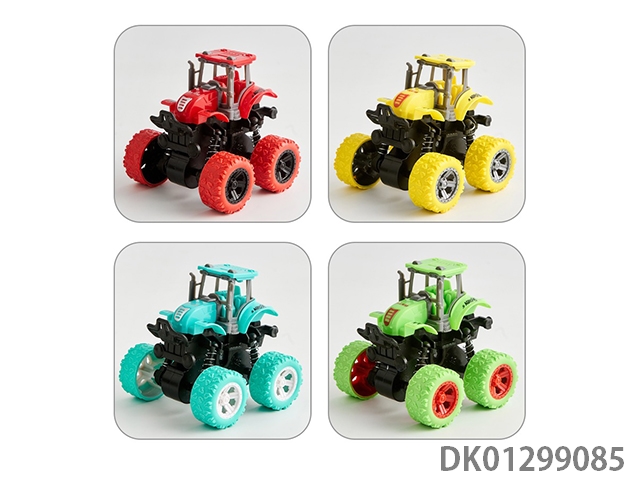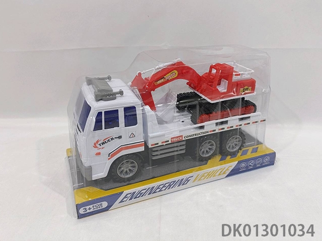 Solid color inertia tractor carrying 4 construction vehicles (2-color mixed) in red blue