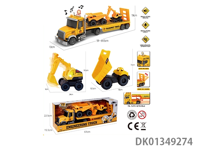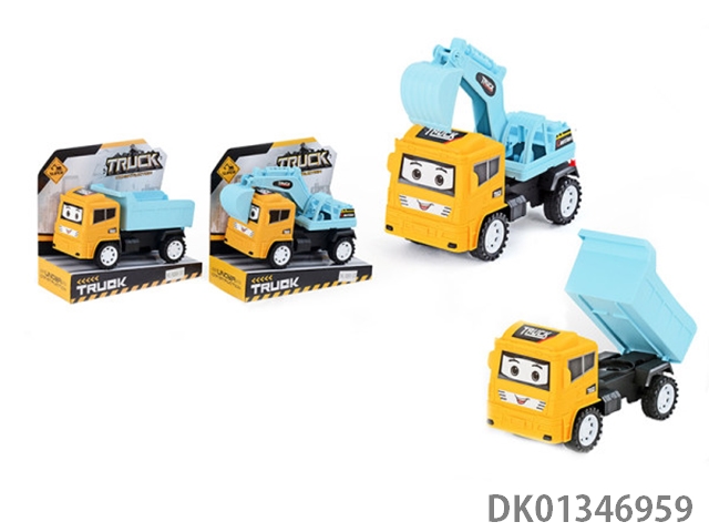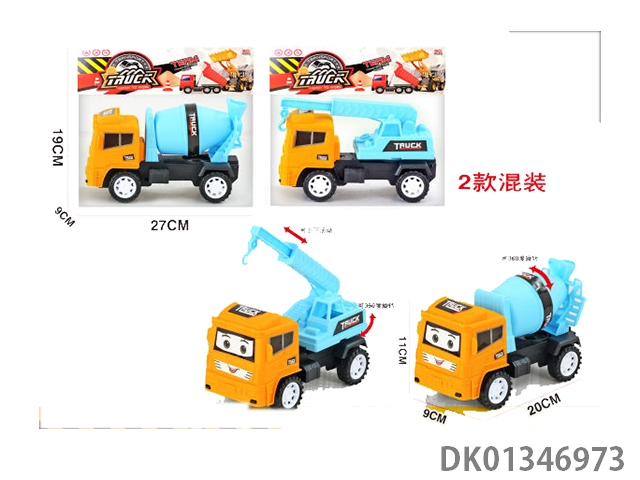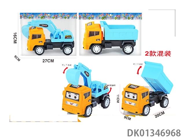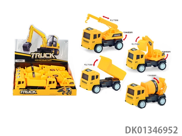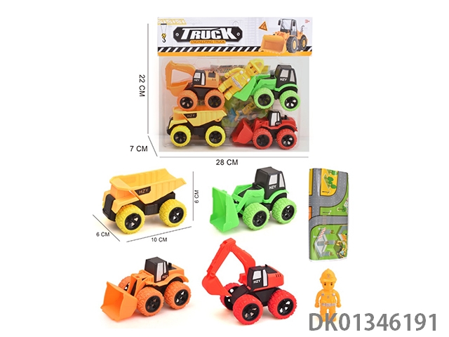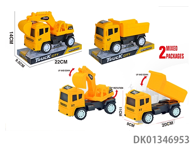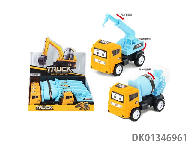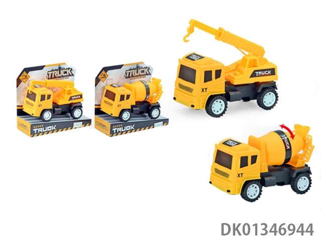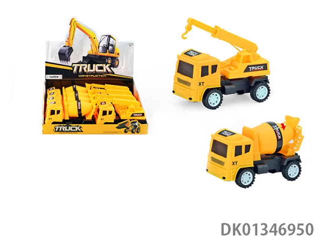 Two mixed models of solid color inertia engineering vehicles, 8pcs/box
