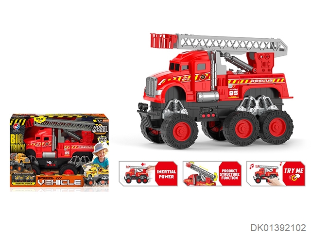 1: 12 6 * 6 Engineering fire ladder truck [sound, light, music