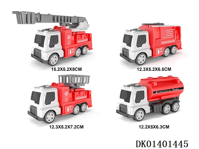 4 Solid color inertia fire trucks