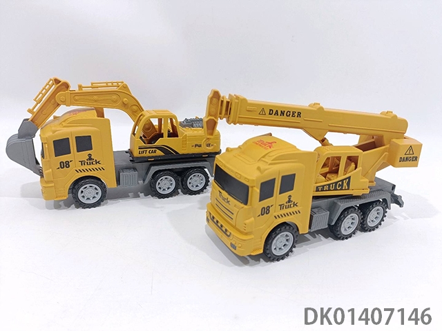 Inertial connected sound and light dump truck, mixer truck, excavator truck, trailer truck, 4 mixed models (yellow)