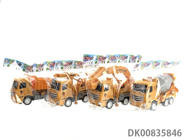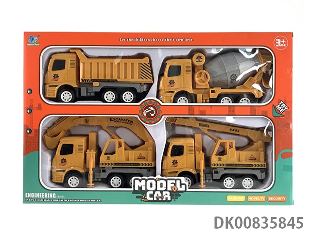 Inertial simulation engineering vehicle series crane dump truck digging truck mud tank truck mixer tractor color box 4 in 1 set