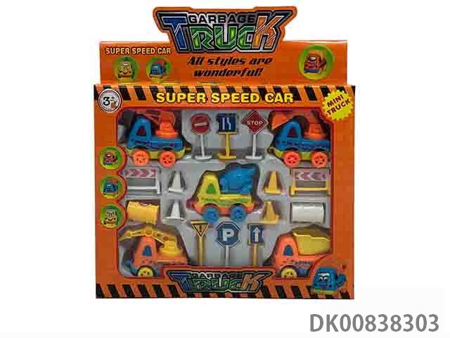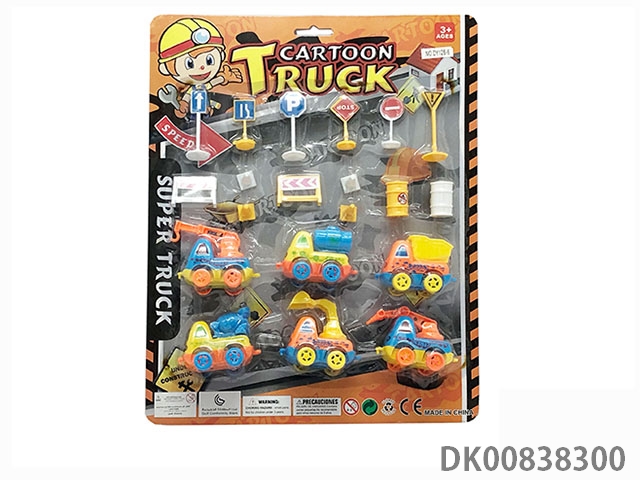 Cartoon inertial engineering car 6 only 14 accessories