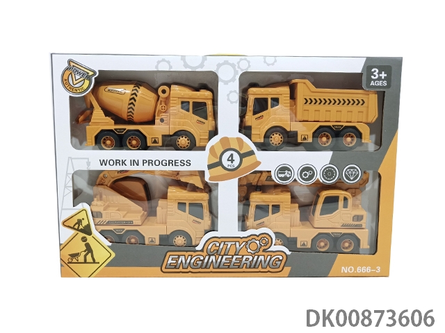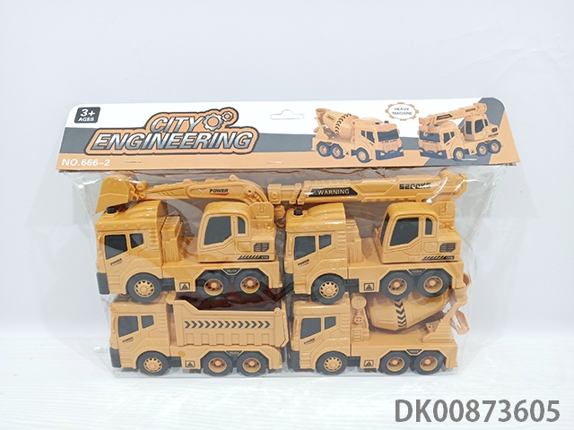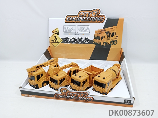Two types of inertia alloy engineering vehicle are mixed with 8pcs/box