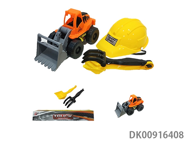 Inertia engineering bulldozer and cap and 2 sand shovel (orange)