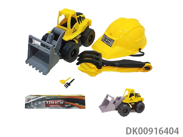 Inertia engineering bulldozer and cap and 2 sand shovel (yellow)