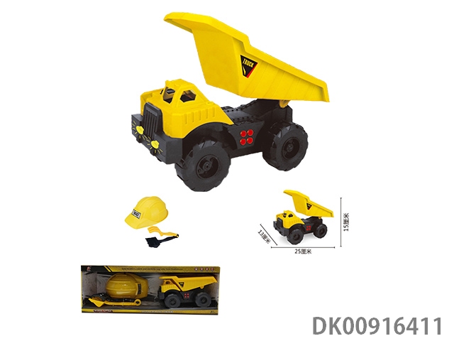 Inertia engineering dump truck and cap and 2 sand shovel (with light and sound) (yellow)