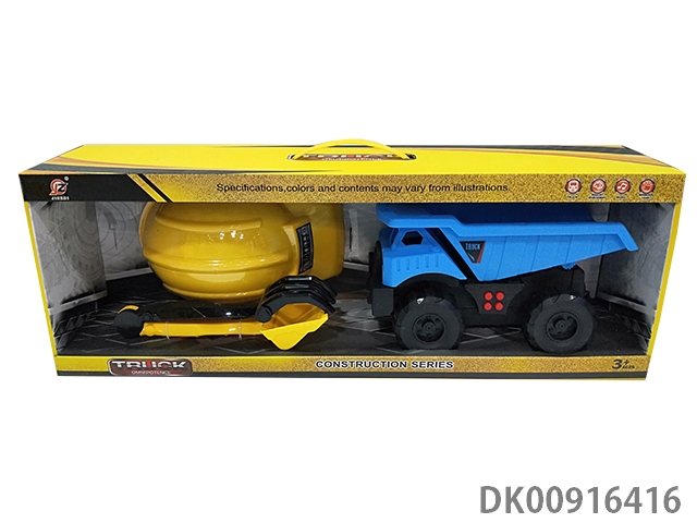 Inertia engineering dump truck and cap and 2 sand shovel (with light and sound) (blue)