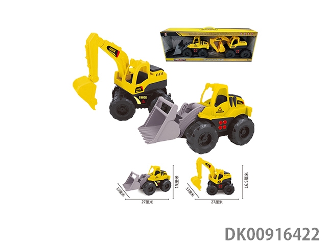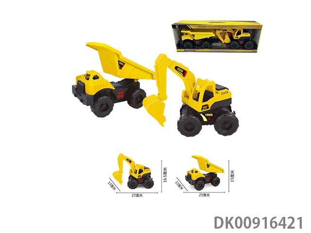 Inertia engineering dump truck and excavator (with light and sound) (yellow)