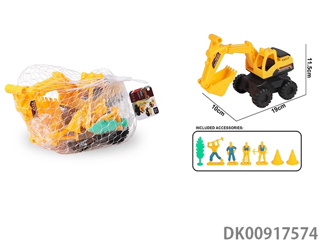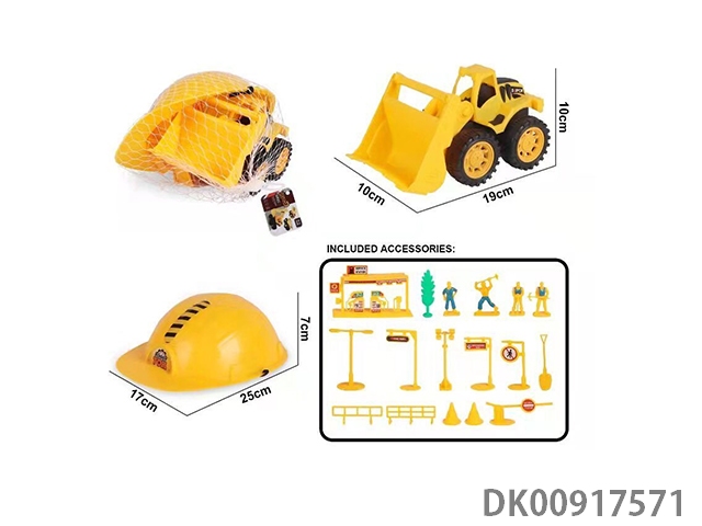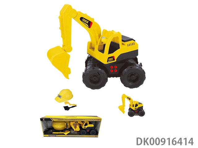Inertia engineering excavator and cap and 2 sand shovel (with light and music) (yellow)