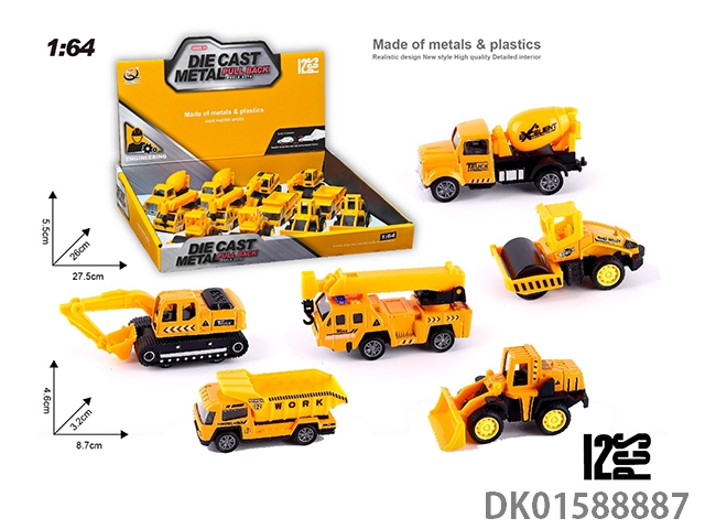 1: 64 Cycle alloy car engineering vehicle series 6 mixed models (12 pieces/box)