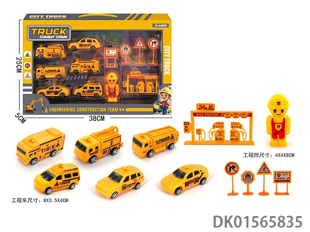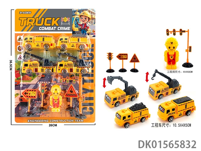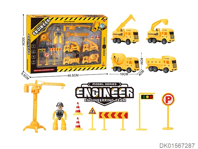 Russian 1:24 die-casting zinc alloy engineering excavator truck and mixer truck double-layer set