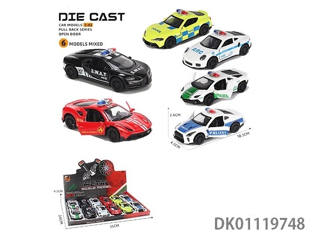 Alloy car model, return door, police car (1:43), 12pcs/box