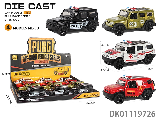 Alloy sound-light return door off-road vehicle model (1:39) 12pcs/box